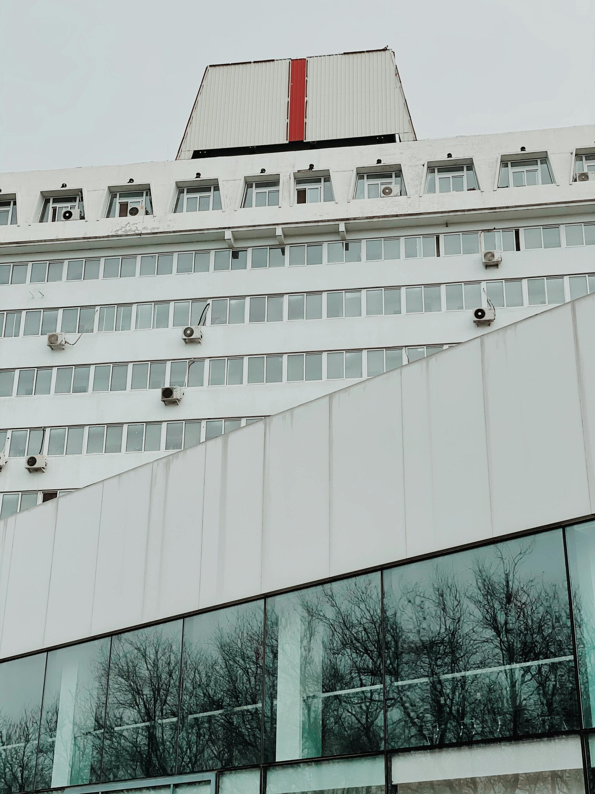 Gründliche Reinigung von Glasflächen an Gebäuden inklusive schwer erreichbarer Stellen.